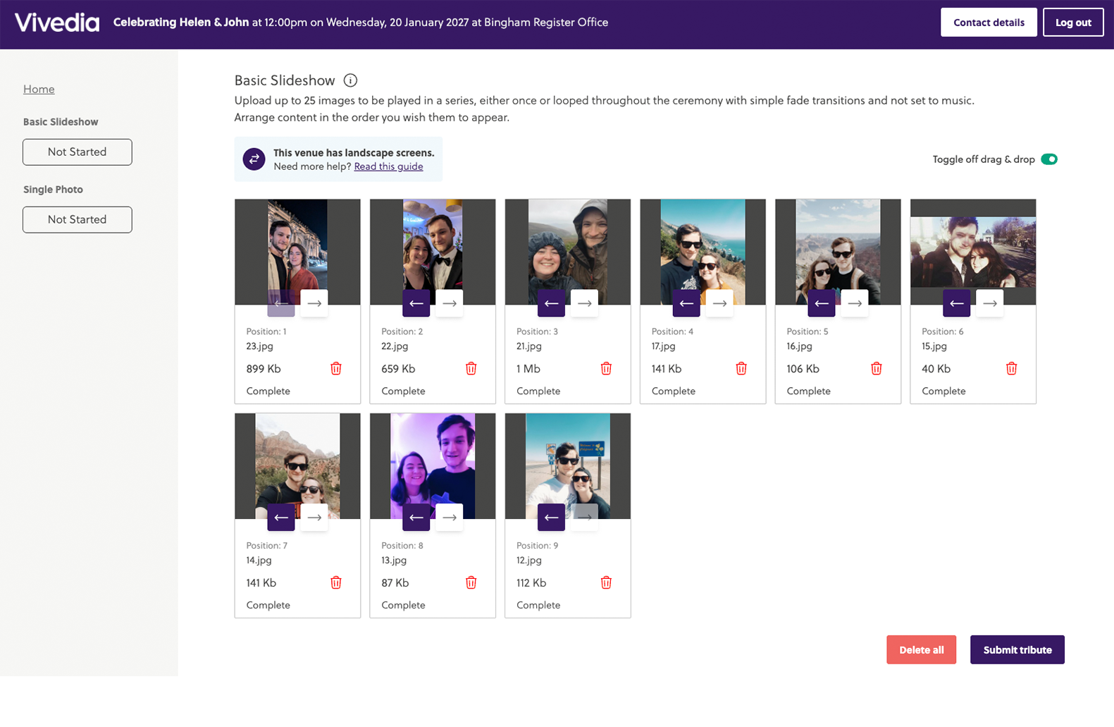 Once satisfied, click the ‘Submit tribute‘ button. Ensure you submit your images by the upload deadline.